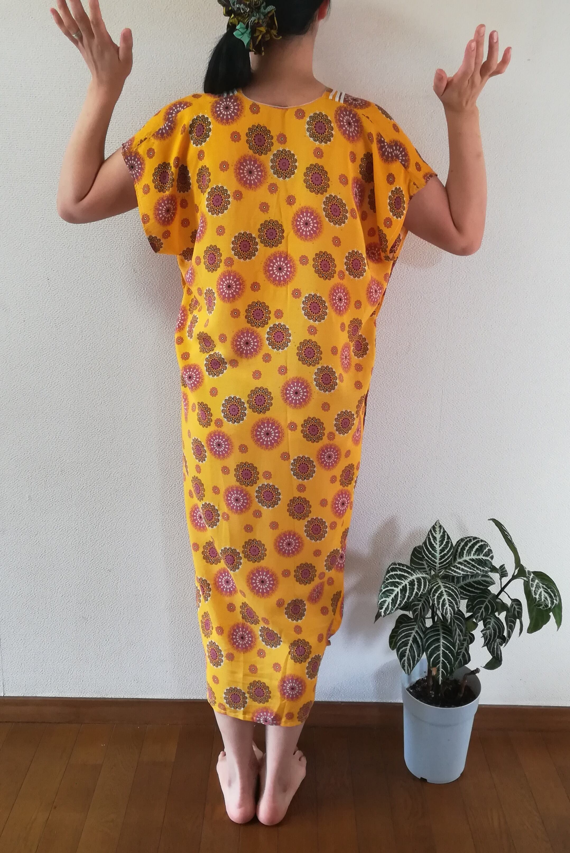 【セネガル女性の普段着】すずし~い夏ゆるワンピース☆黄色の花柄