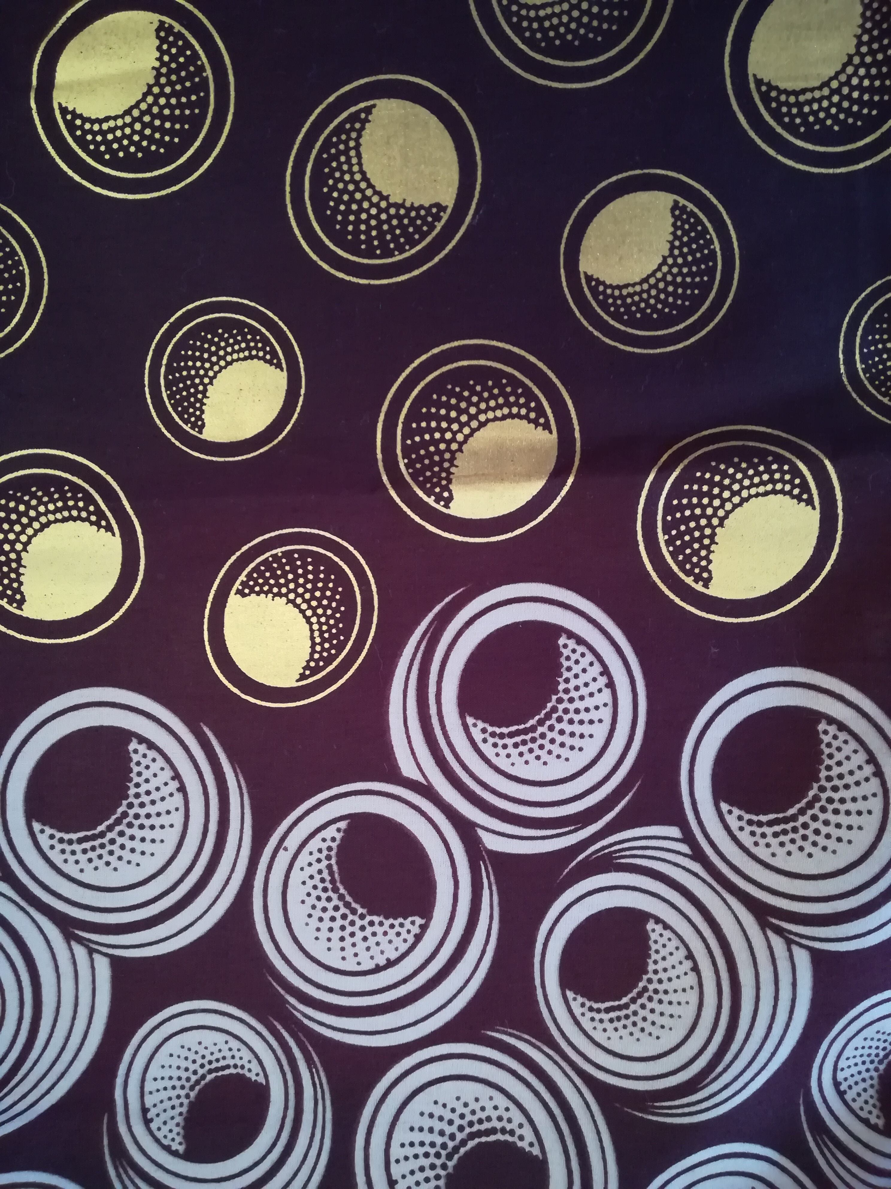 WAX生地とは、西アフリカを中心(一部ヨーロッパでも)に作られている、伝統的なアフリカンプリントです。透け感はあまりなくしっかりしているので、服やバッグ作りにお勧めです。