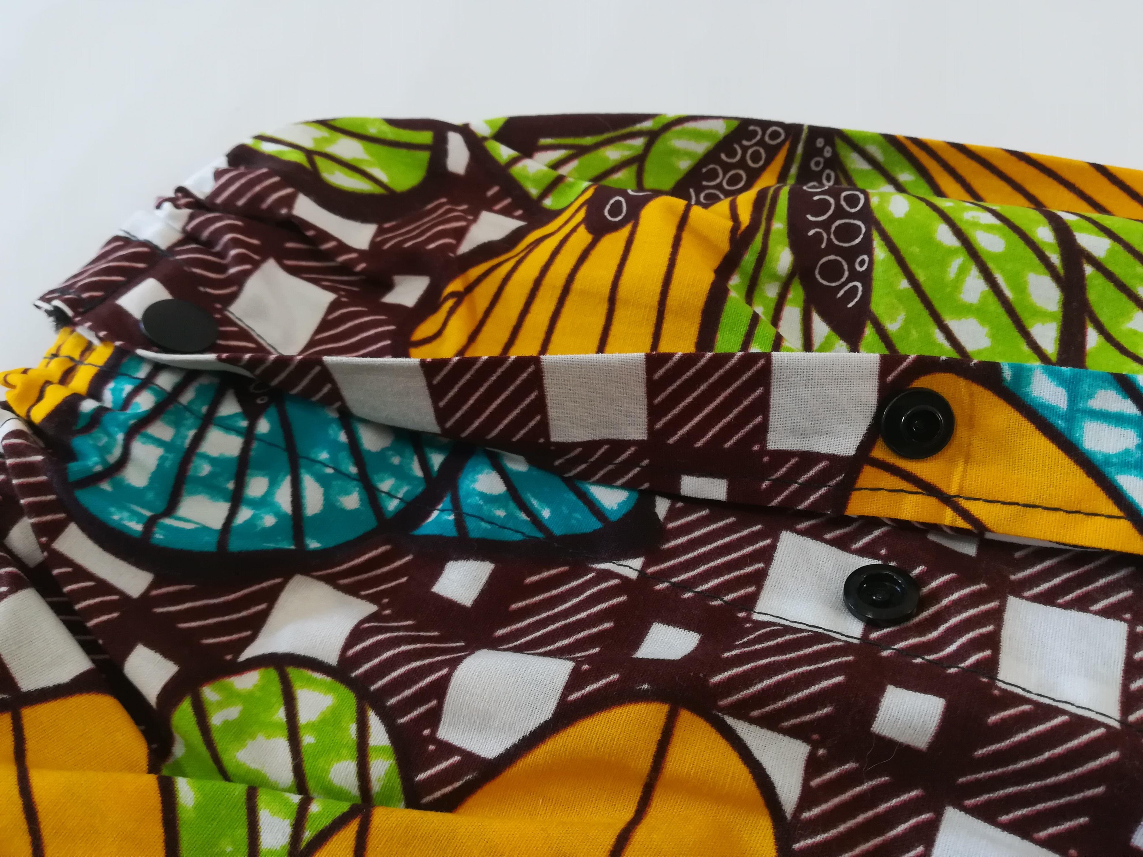 セネガルで買い付けた生地を使い、日本で裁縫しました。